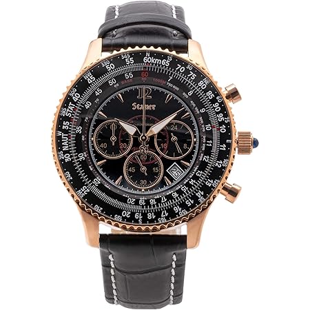 Amazon Com Stauer Men S Flyboy 1916 Black Midnight Chronograph Watch With Black Leather Band Watches