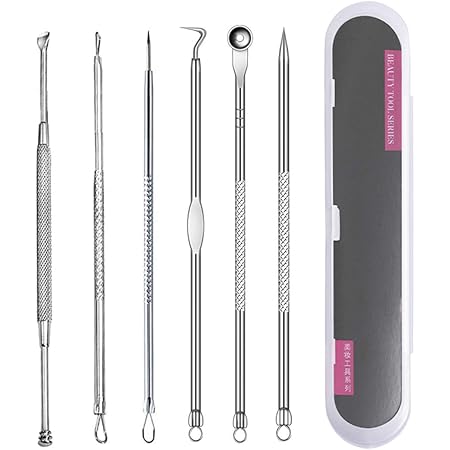 Amazon Com 6 In 1 Pimple Popper Tool Kit With Ear Pick Douanddou Blackhead Removal Tool Kit Comedone Extractor Blackhead Remover Kit Skin Care Acne Removal Needle For Women Blemish Whitehead Popping Zit