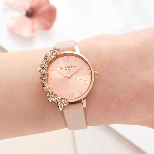 Its soft smooth leather strap comes in our pretty grey lilac hue. Thank you for joining the Olivia Burton family. Olivia Burton watch with floral design on the watch face rose gold watch with le.