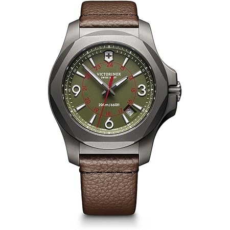 Amazon Com Victorinox Swiss Army Men S I N O X Titanium Swiss Quartz Watch With Leather Strap Brown 21 Model 241779 Watches