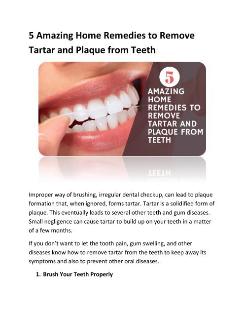 Home Remedies To Remove Plaque And Tartar Beauty Tips Diary Teeth Health Health Remedies Dental Health